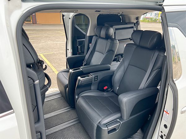 Ample Space: The Toyota Alphard redefines spaciousness, ensuring that every passenger enjoys ample legroom and comfort. Say goodbye to cramped journeys – our MPV boasts a capacious interior that can easily accommodate your family or friends, along with all their luggage. Whether you're carrying bulky baggage or just seeking a more relaxed travel experience, you'll find the Alphard is designed with your comfort in mind.
